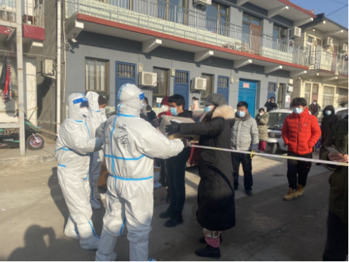 2021年的跨年与往年都不同,大龙控股的10名服务保障南法信地区西杜兰庄村的志愿者没有与家人团聚,而是坚守在西杜兰庄村的各个服务站点,为村民配送生活必需品和维持秩序。