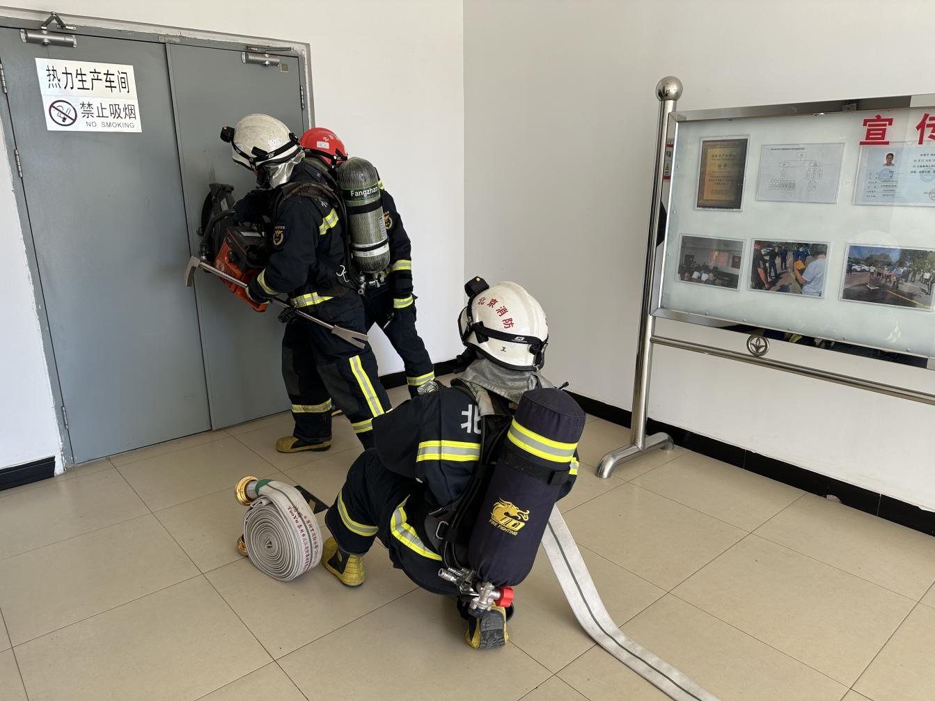2023-2024年供暖任务虽已结束,但大龙控股所属天房市政公司“停暖不停工”,为确保公司消防安全,提升应对突发事件的处置能力,消除各类安全隐患,3月20日,大龙控股天房市政公司配合顺义区新国展消防救援站进行消防安全检查及应急处置演练活动。