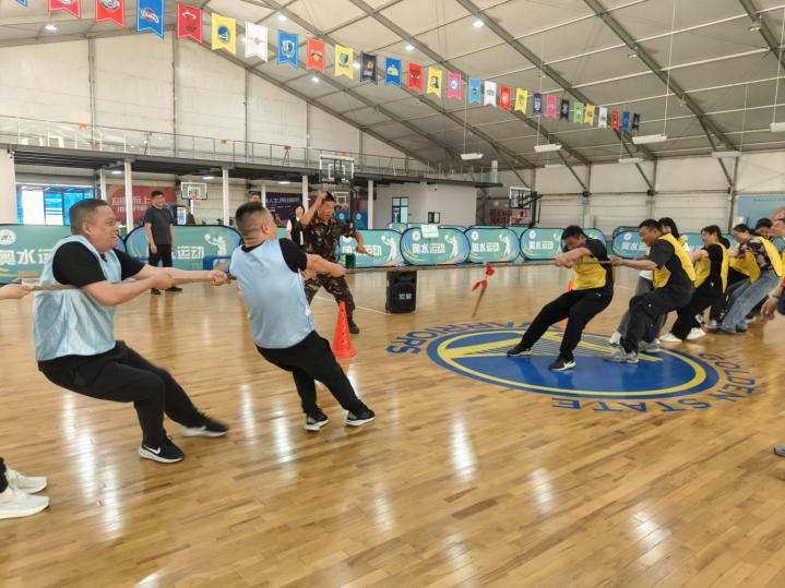活动现场,党旗飘扬,气氛热烈。来自天房绿茵、天房市政、得天力广告支部的党员干部们热情高涨,组成3支参赛队伍,以昂扬的斗志投入到各项比赛中。运动会精心设置了多个兼具趣味性和挑战性的项目,如“红色接力赛”“团结拔河赛”“数字接龙”“松鼠与大树”等。在“红色接力赛”中,队员们手持接力棒,接力回答党史知识问题,在奔跑中重温党的光辉历程。“团结拔河赛”上,大家齐心协力、奋勇拼搏,充分展现出团结一心、攻坚克难的精神风貌。投篮比赛中,队员们全神贯注,调整姿势、瞄准篮筐、奋力投球,每一次篮球入筐,都能引发队友们的欢呼喝彩。足球点分项目中,队员们屏气凝神,助跑、射门,足球在场上划出一道道优美的弧线,精准命中目标得分,现场加油声、欢呼声此起彼伏,将活动氛围推向高潮。