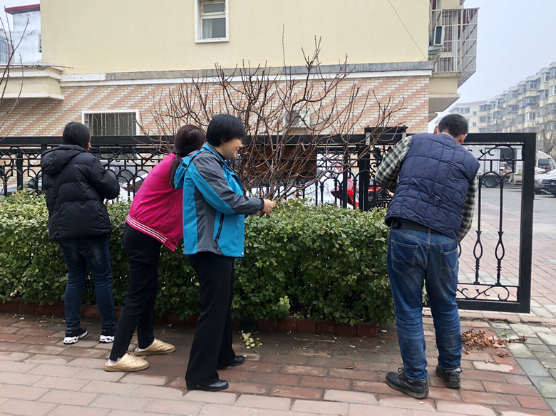 物业公司40余人在所辖6个小区新载西府海棠等果树30棵,黄杨2000株。